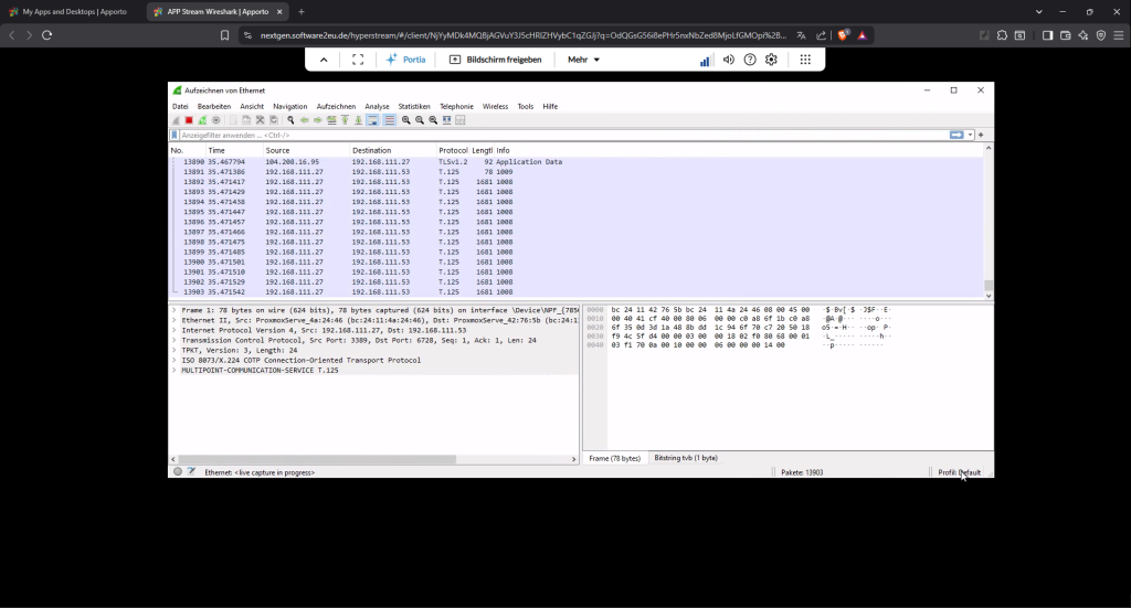 Der komplette Bildschirm wird flüssig in den Browser gestreamt.