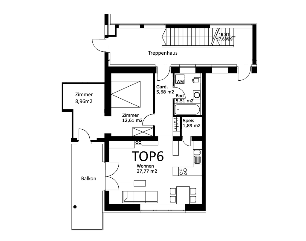 Die Wohnung befindet sich im ersten Stock der Wohnanlage.